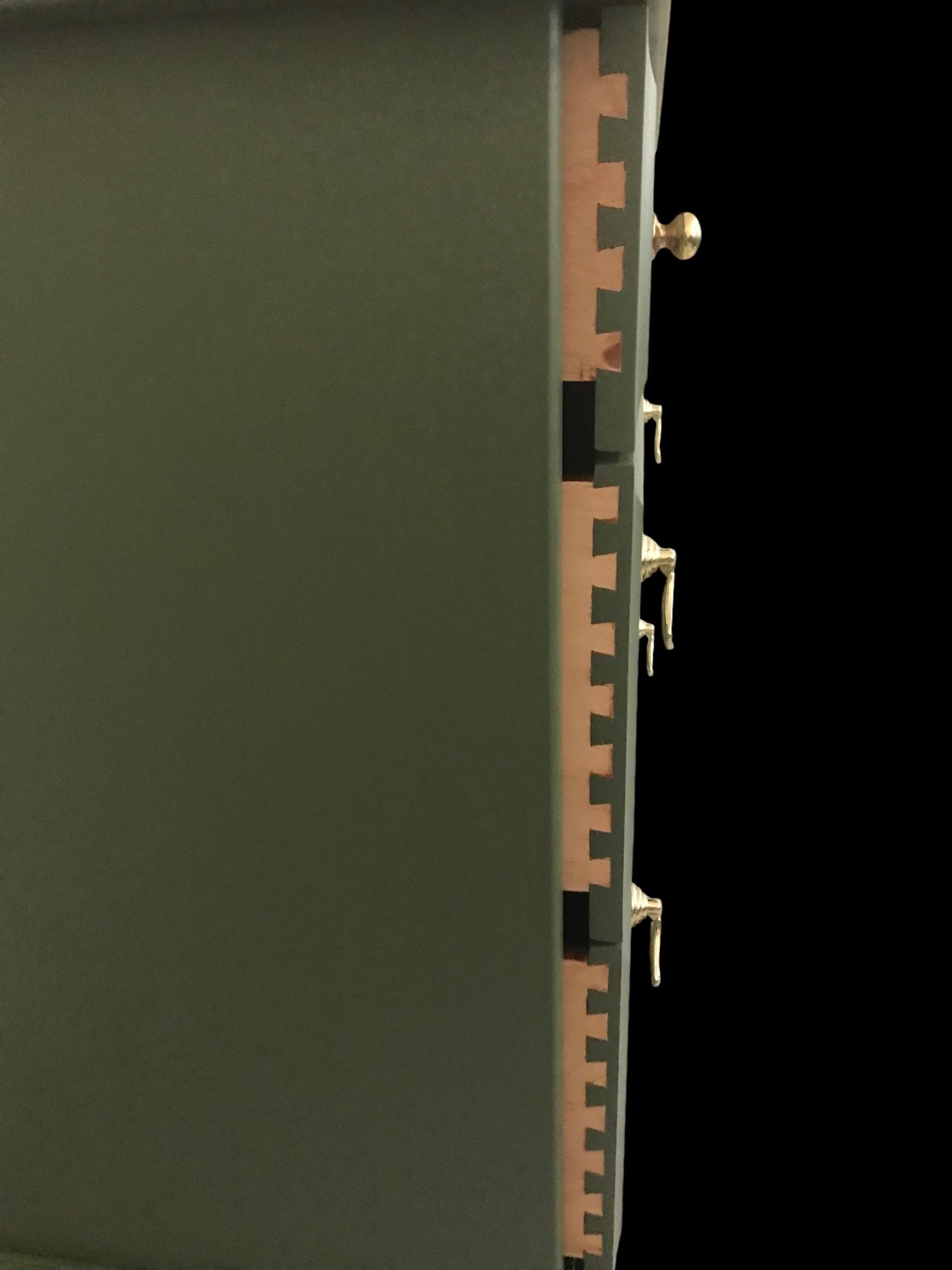 Dovetails joints are detailed as standard. Other detailing available upon request such as stenciling, gold highlights, exposed wooden tops and drawer lining.