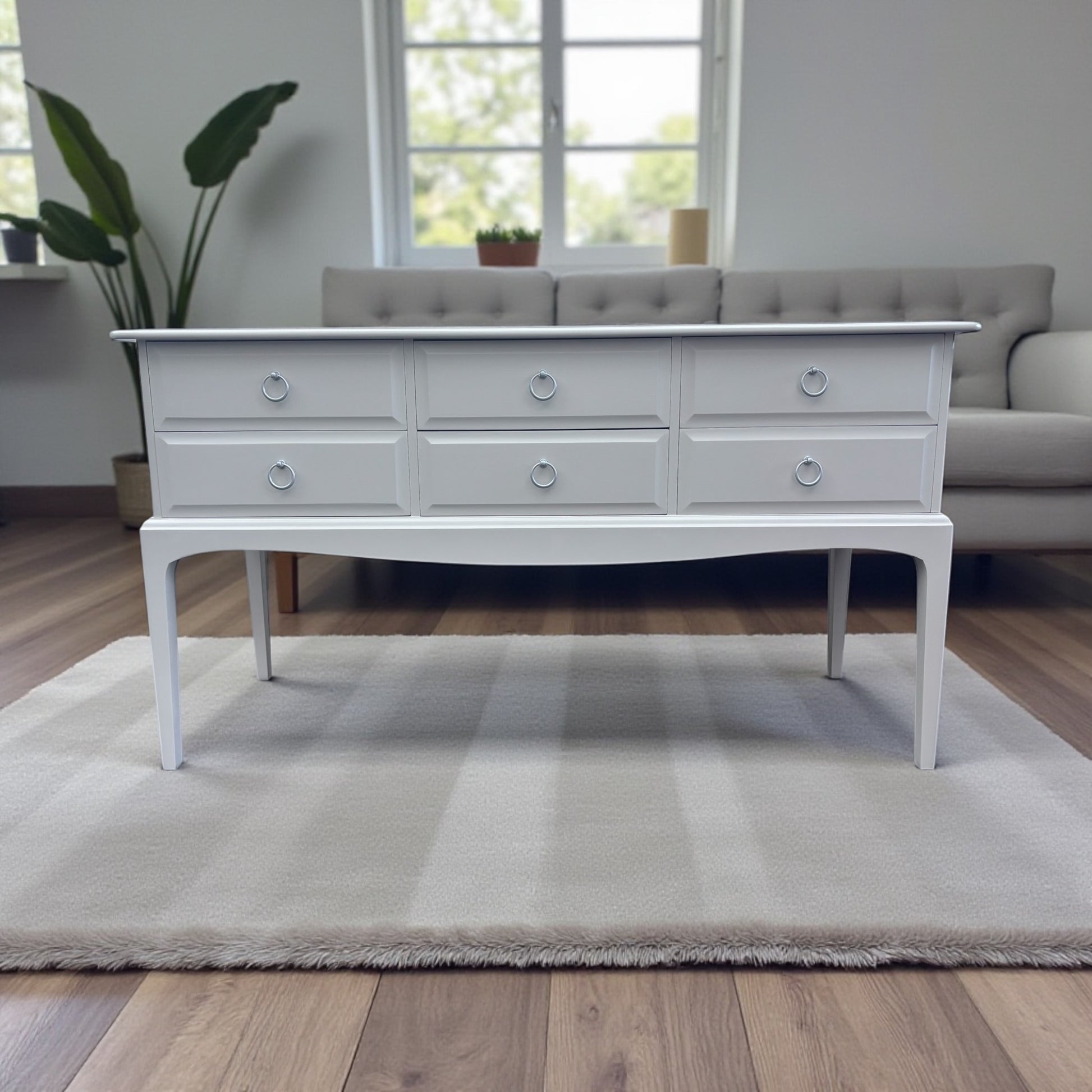 Vintage 1970s/1980s newly refinished Stag Minstrel 6 Drawer Dressing table/Sideboad available for refinishing in your choice of colour. Matching furniture also available.