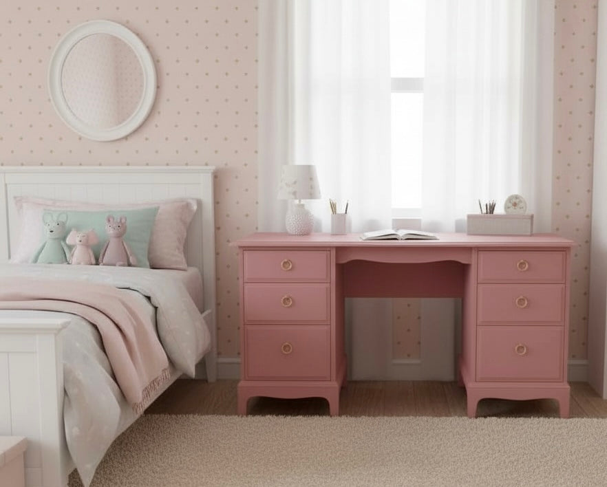 Vintage 1970s/1980s newly refinished Stag Minstrel Desk available for refinishing in your choice of colour. Matching furniture also available.